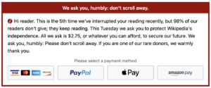 To help get more people to donate to Wikipedia, the website is now offering Apple Pay support for users to make donations through.