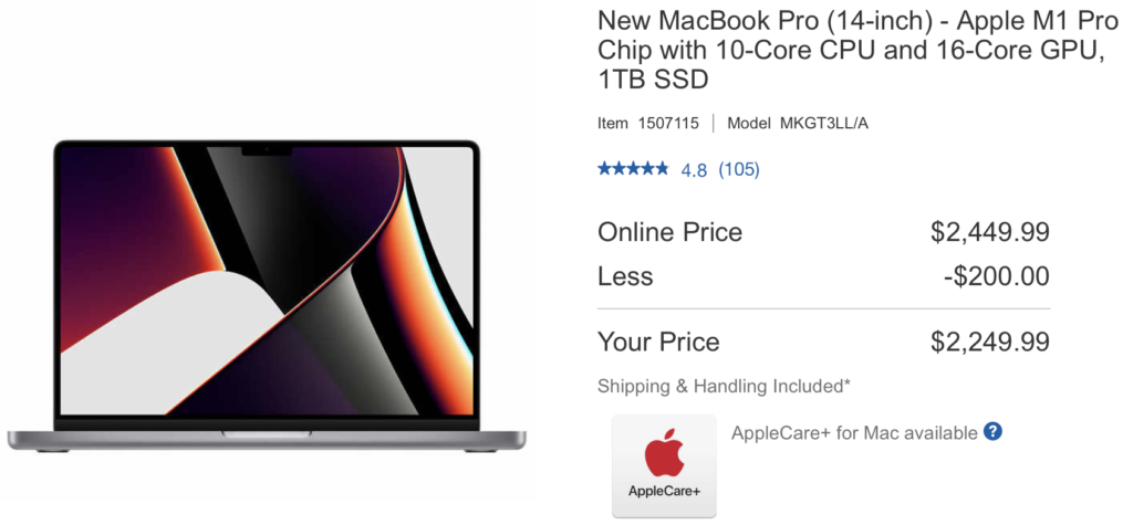 The 14-inch M1 Pro MacBook Pro is now available for a fantastic price of $2249.99, down from $2499 at Costco. This deal is available only for Costco members and can be picked up at a warehouse or delivered directly at home. This deal is limited to only two units per member.