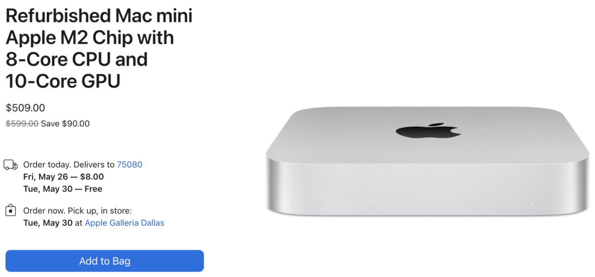 The base model usually starts at $599 (MSRP) when buying new, and that comes with an M2 chip, 8GB unified memory, and 256GB SSD. The standard configuration with the M2 Pro starts at $1,299 (MSRP) when buying new; however, at the time of this writing, that configuration has not been available to purchase at the Refurbished store. It’s possible that Apple hasn’t any of the stock ready for that model, or it completely ran out of stock already as supplies for refurbished models do come and go.