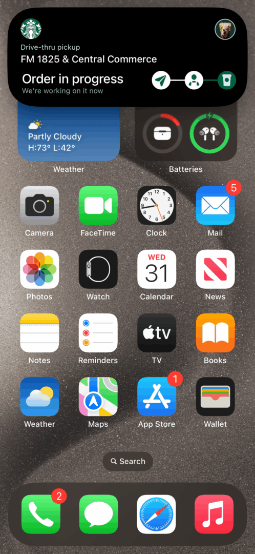 Starbucks Live Activities shows when the order has been placed and confirmation that the store you have chosen to do the order through has received the order, letting you know that it is being prepared, and then alerting you when your order is ready.
