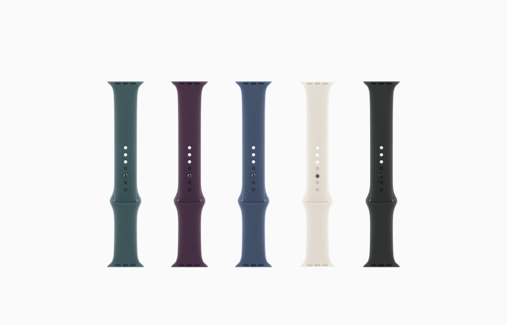 For the Sport Band ($49), we have Plum, Lake Green, Denim, Starlight, Light Blush, Stone Gray, and Black.