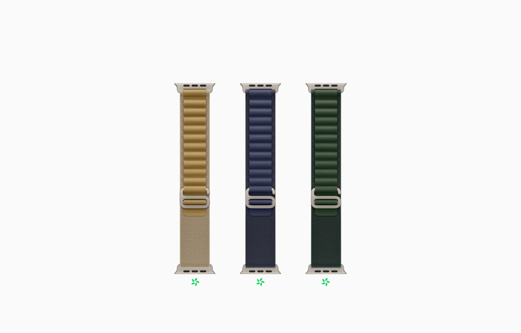 The new Sport Loop, Alpine Loop, Trail Loop, Milanese Loop, Titanium Milanese Loop, and Braided Solo Loop are now carbon-neutral. All new Apple Watch bands are available to pre-order on Apple’s website today, with availability in stores starting September 20.