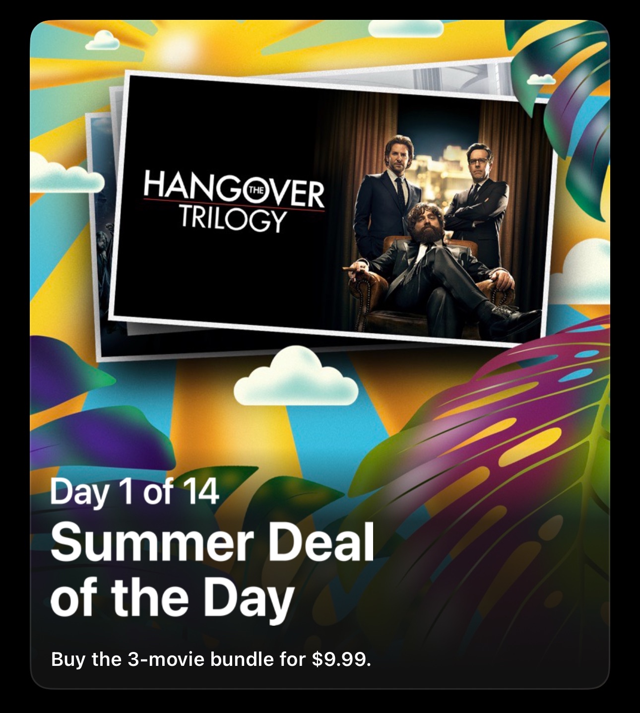 Perhaps to encourage more usage of the Apple TV app, as well as overall purchases and rentals, Apple has started a new promotion in its TV app called “Summer Deal of the Day” that does just that; promotes a single deal for the day available exclusively in the TV app.