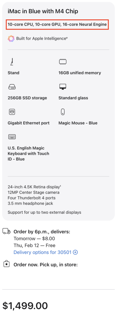 On the other hand, if you go with the model with four Thunderbolt ports, you’ll see that the compact Magic Keyboard with Touch ID is included, so there’s no need to upgrade to the extended Magic Keyboard with Touch ID and Numeric Keypad if you care about that feature. Gigabit Ethernet is included with the four-port model as well. On top of those two benefits, you’ll get the full-fledged M4 chip with a 10-core CPU and a 10-core GPU (vs. 8-core CPU/8-core GPU on the two-port model). Previously, on both the M1 and M3 four-port models, two of the USB-C ports supported Thunderbolt, and you could connect that model to one external display at up to 6K resolution at 60Hz. But now, since the full-on M4 chip has two Thunderbolt controllers, this means that all four USB-C ports support Thunderbolt on the upgraded model. Even better, that upgraded model can drive up to two external displays at 6K resolution at 60Hz. Internally, the four-port model has two fans to cool the motherboard, whereas the two-port model just has one fan (as shown in iFixit’s teardown). The upgraded four-port model still starts at just $1,499, making this model a far better value than ever before.