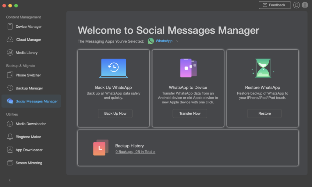 No more worrying over your conversations staying on your old device. AnyTrans has a built-in Messages Manager, which is compatible with WhatsApp, Viber, and Line.